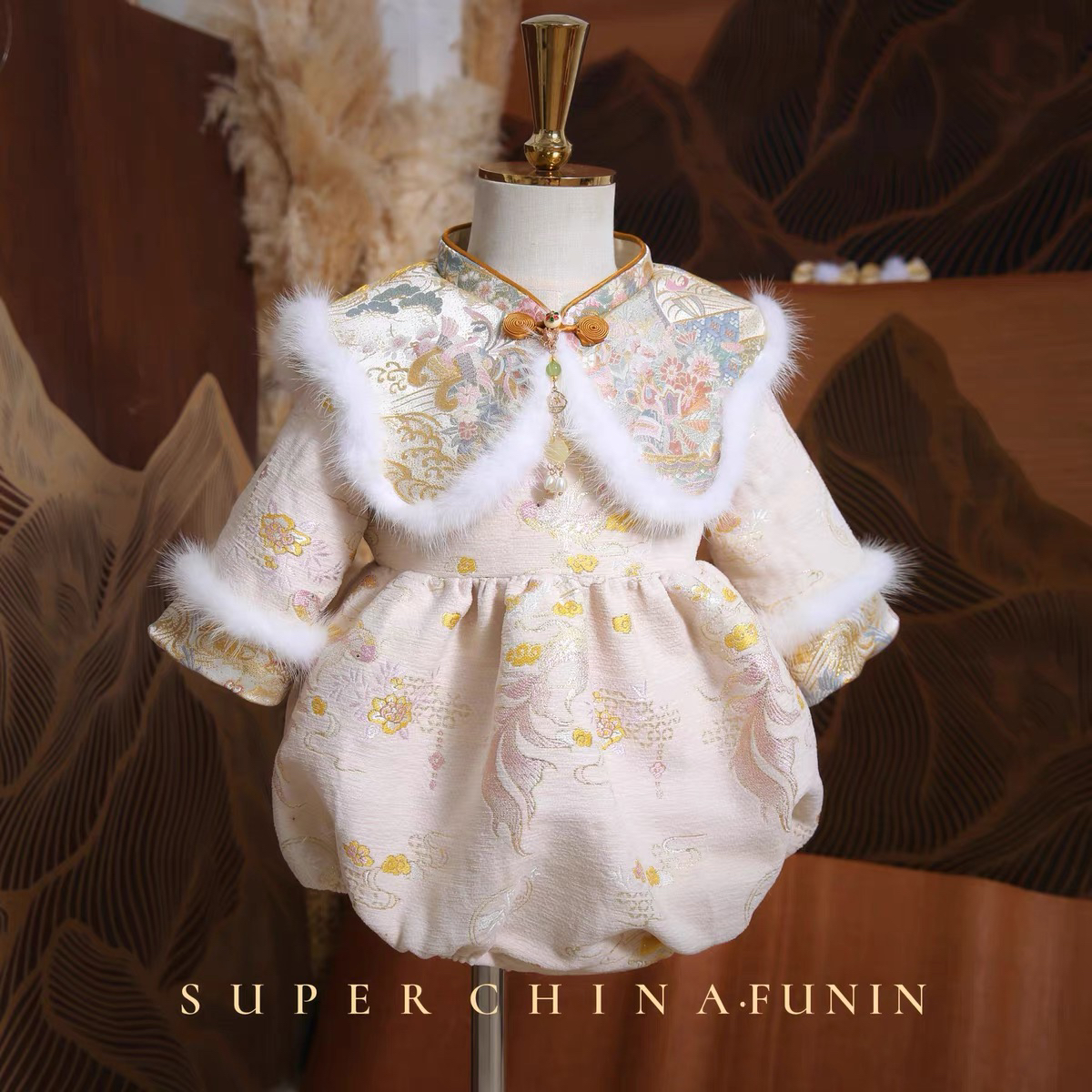 新中式女宝宝周岁礼服秋冬满月宴百天抓周旗袍生日唐装冠衣拜年服