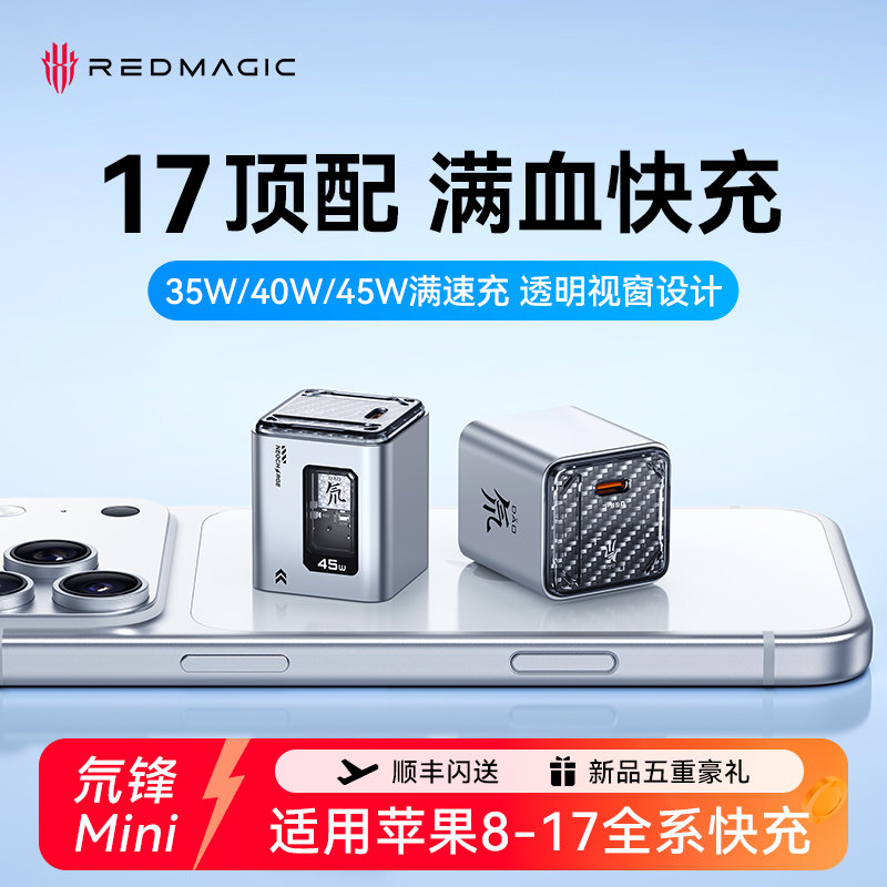 【iPhone17首选】努比亚红魔45W/40W充电头适用苹果17Promax充电器三星手机pd氮化镓快充数据线16能量块mini