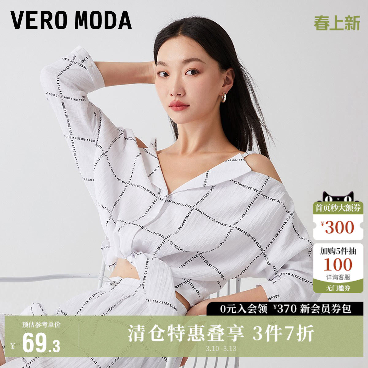 Vero Moda奥莱衬衫女春夏清仓宽松七分袖短款吊带露肩简约上衣