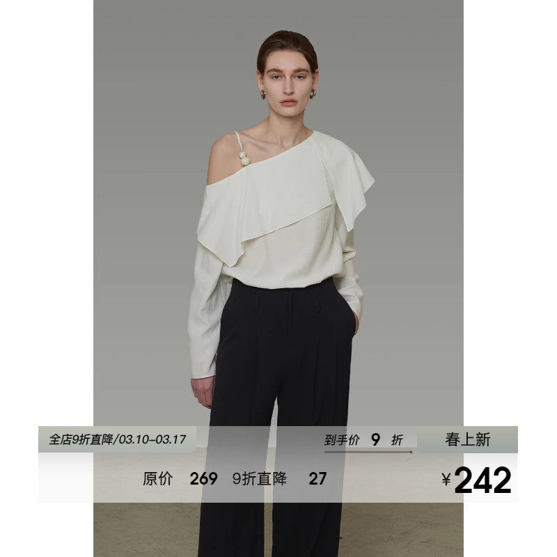 UNSPOKEN缎面斜肩衬衫不对称露肩设计简约大气长袖衬衣女2026新款