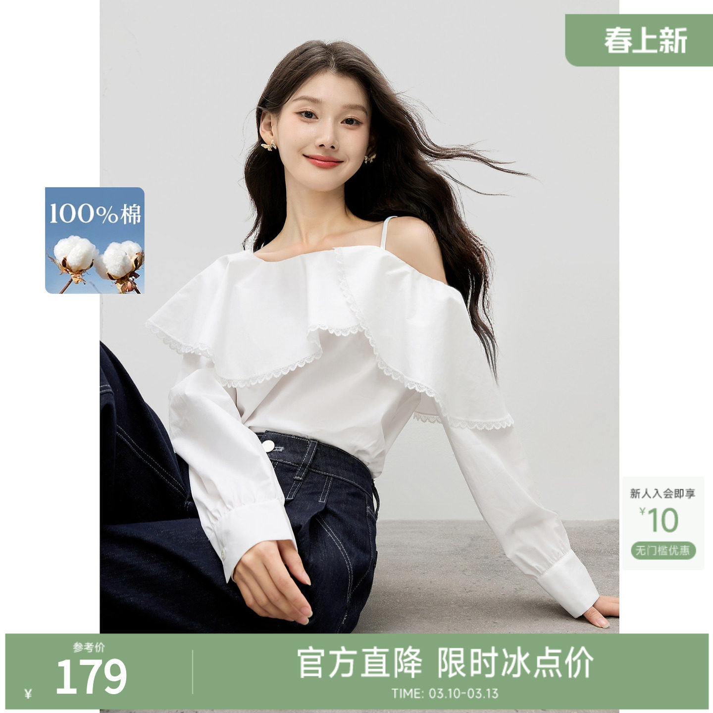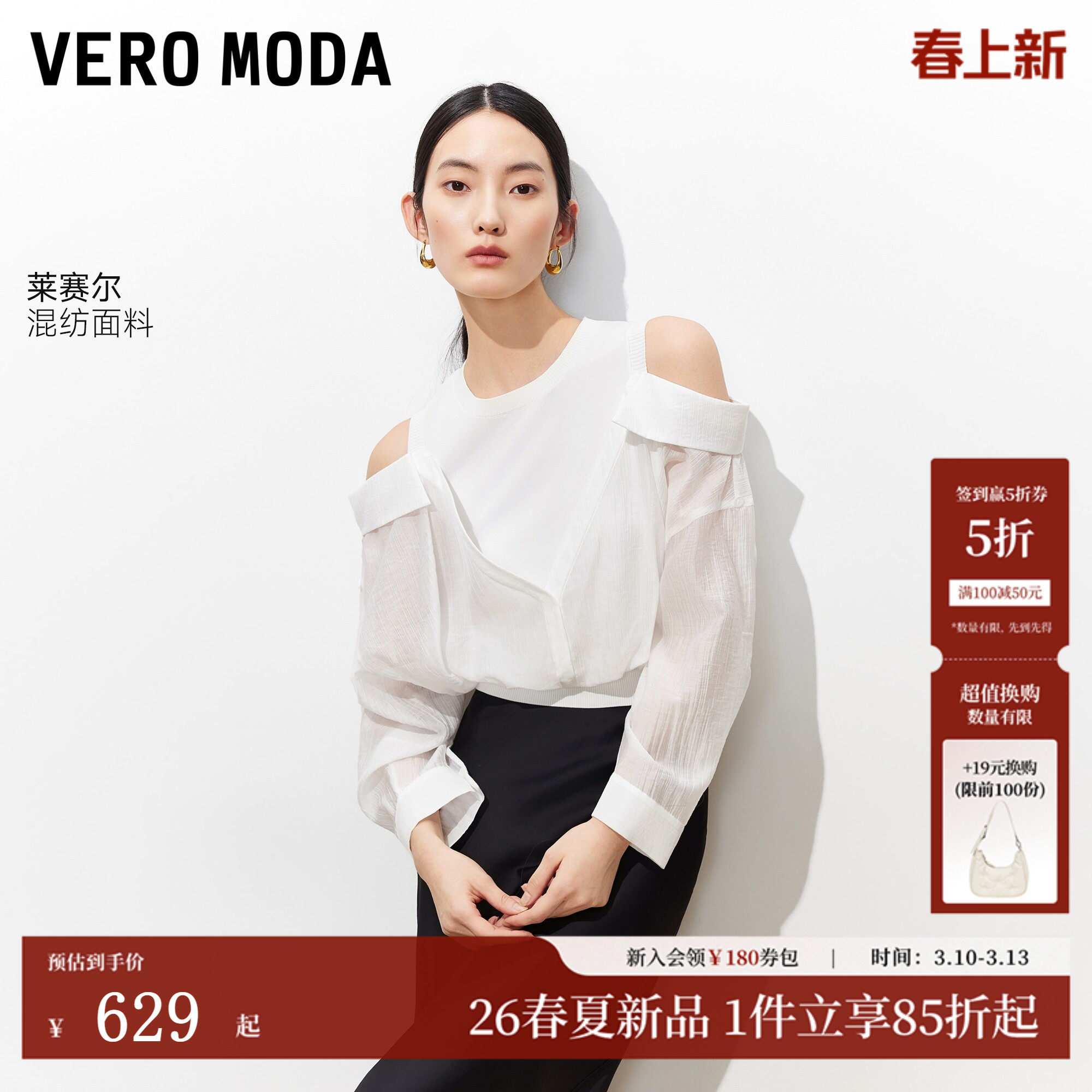 Vero Moda衬衫女2026春季新款含莱赛尔露肩针织拼接上衣326151001