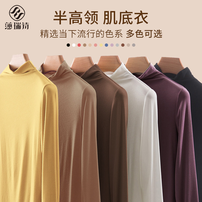 2024秋季莫代尔半高领打底衫女长袖内搭T恤宽松大码薄款纯色上衣