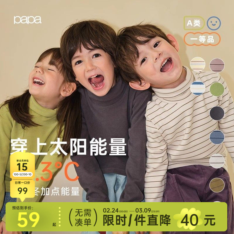 【波波绒】papa爬爬冬季儿童打底衫内搭高领男女宝宝条纹长袖发热