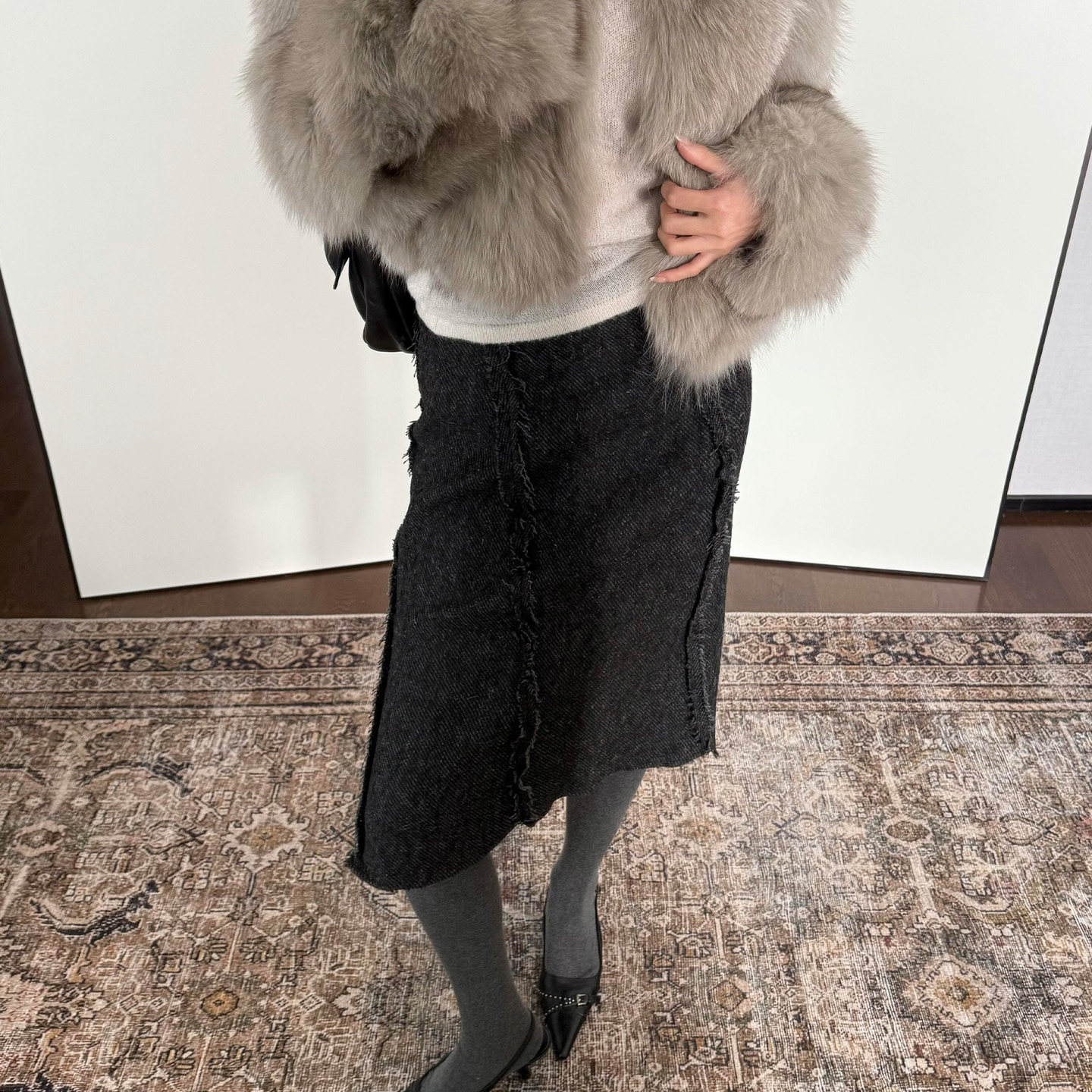 法式复古斜纹毛边深灰色半身裙女2026新款低腰百搭重工A字裙中裙