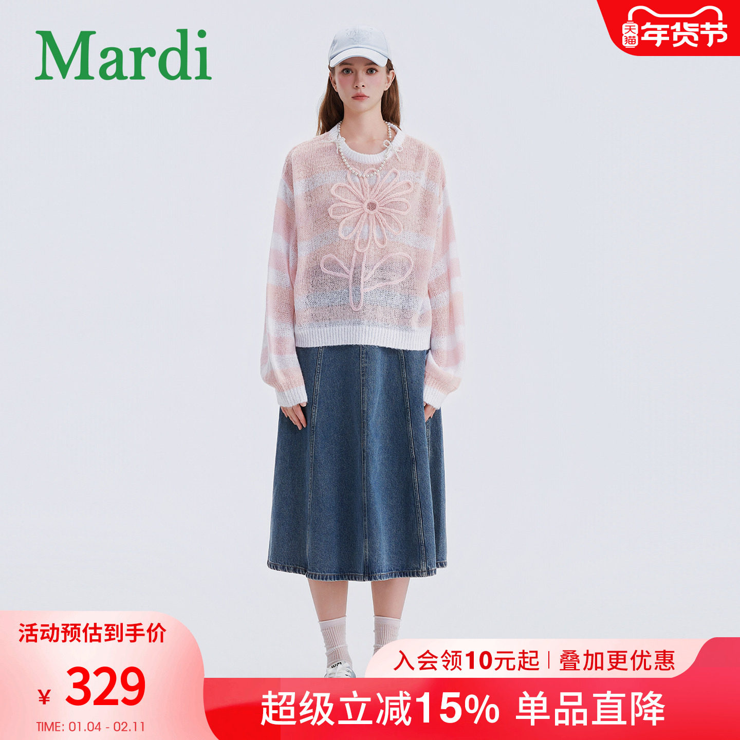 MARDI女装2025秋季新款女士高腰显瘦A字裙中裙款牛仔半身裙