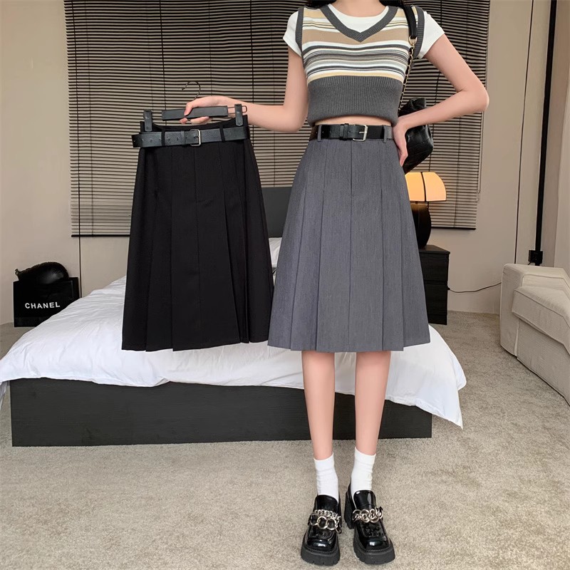 大码半身裙胖mm高腰小个子学院风a字裙中裙灰色西装百褶裙中长款