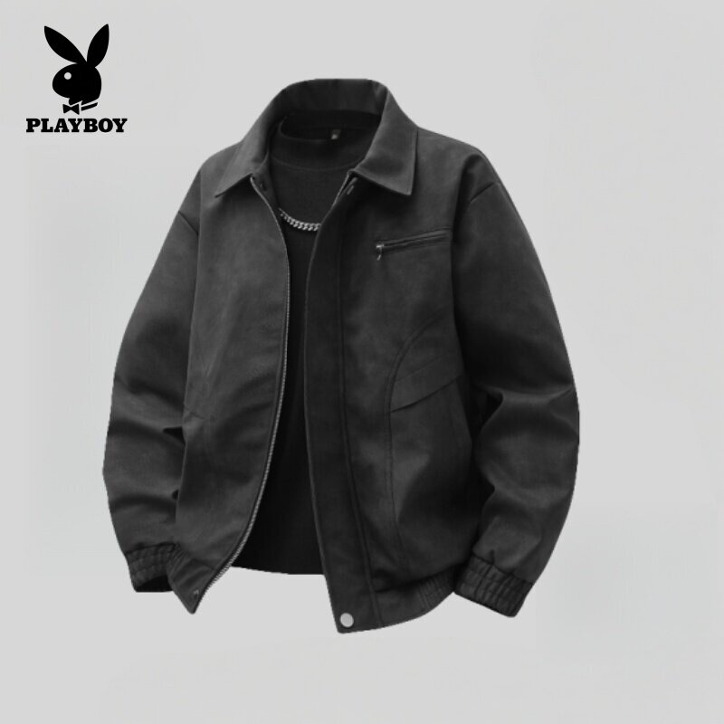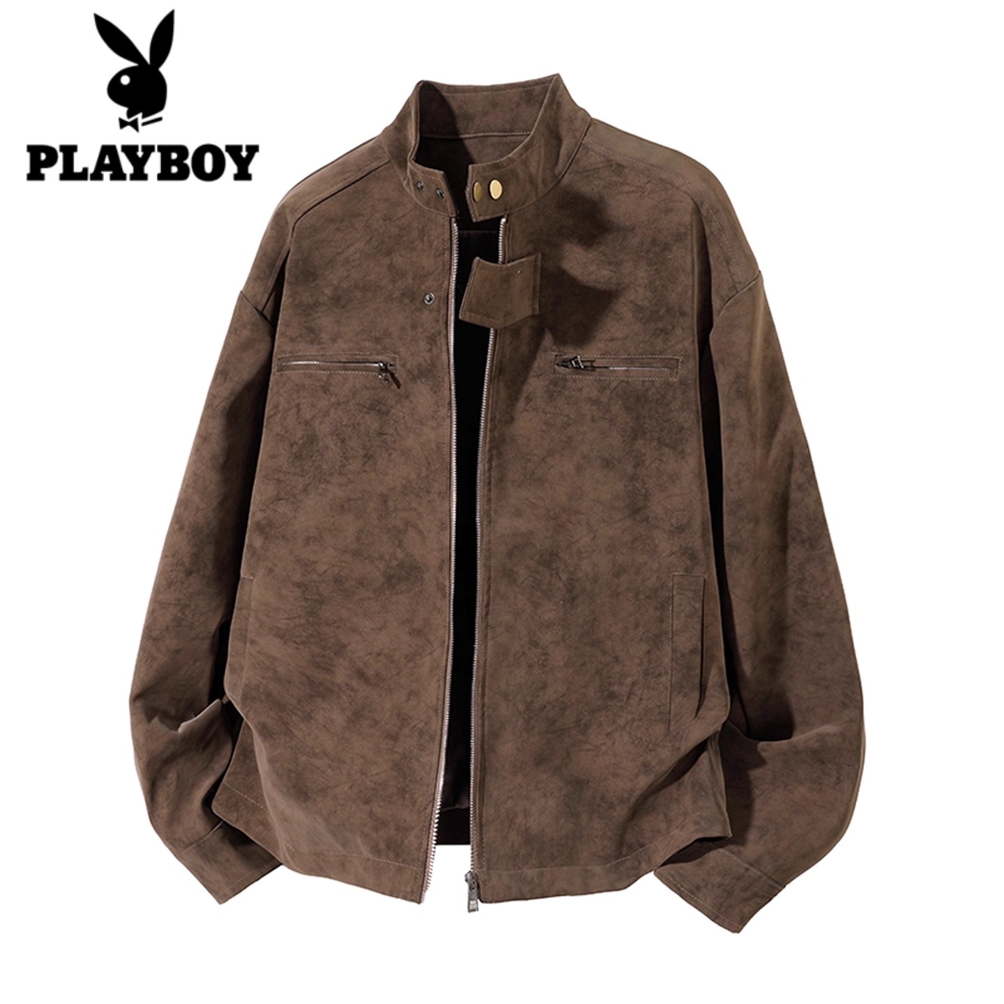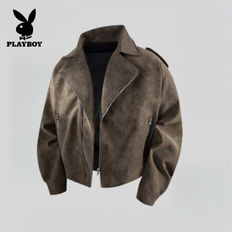 花花公子美式复古皮衣夹克外套男款2025春秋宽松工装大码休闲上衣