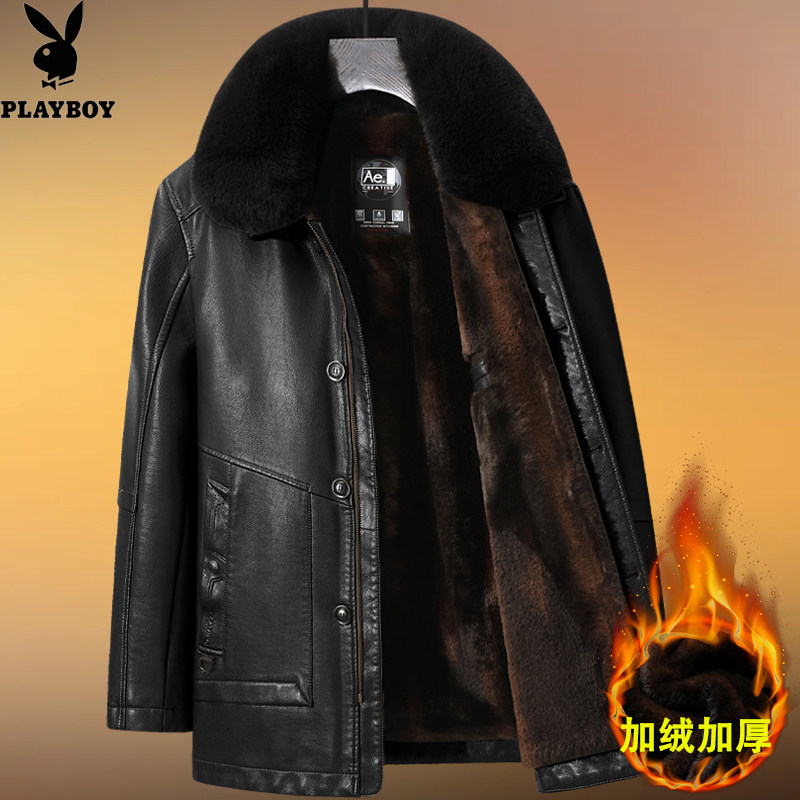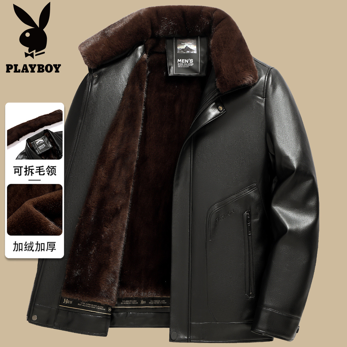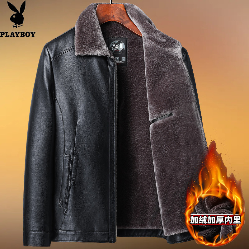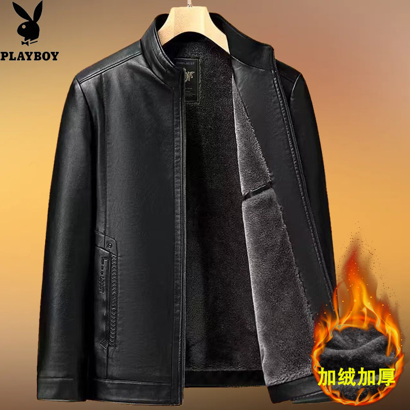 花花公子皮衣男士加绒加厚保暖中老年爸爸装外套冬季皮夹克上衣男