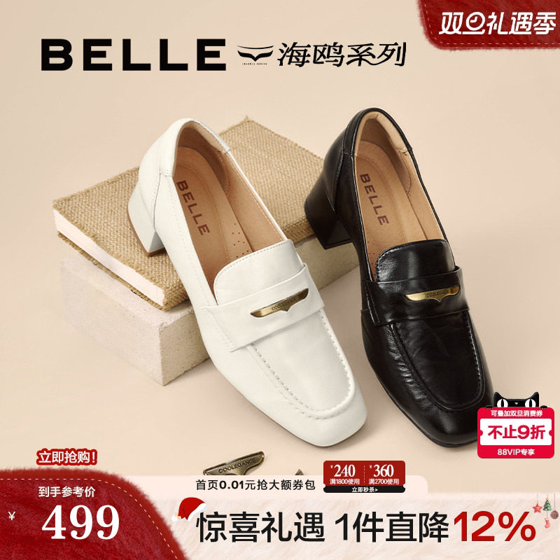 百丽海鸥粗高跟乐福鞋女2025新款黑色小皮鞋深口单鞋子3PAF2CA5