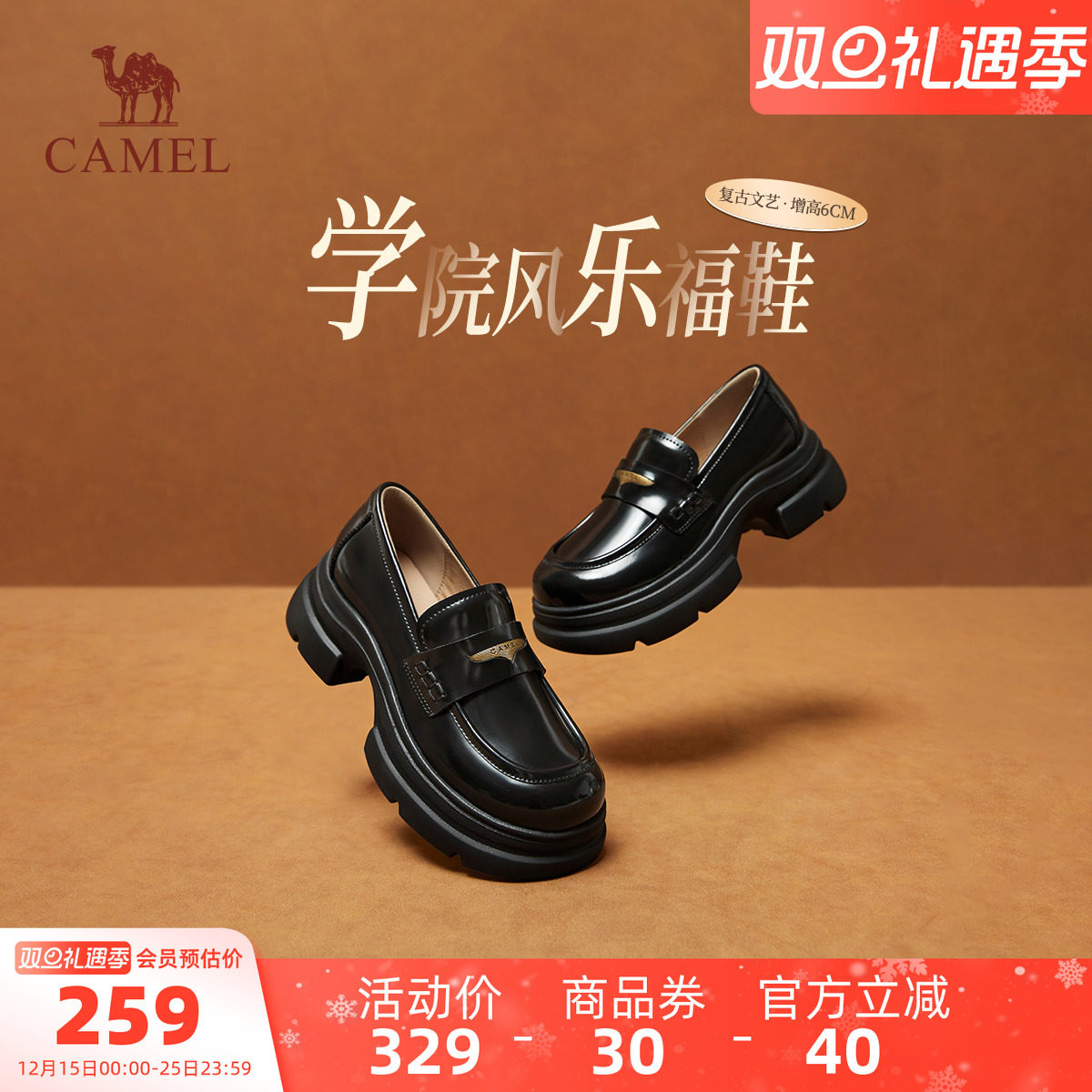 骆驼女鞋2025秋季新款厚底增高乐福鞋英伦风小皮鞋粗高跟深口单鞋