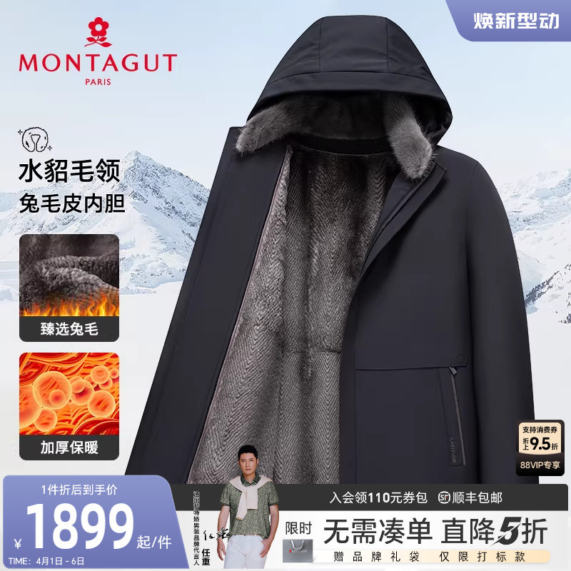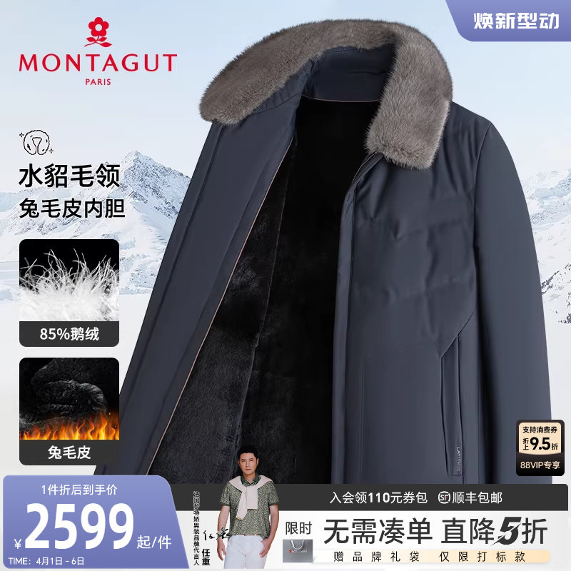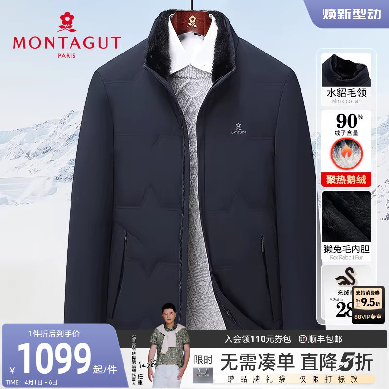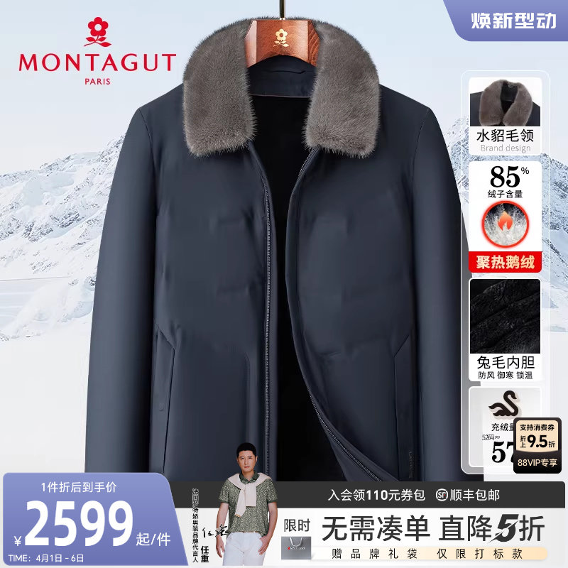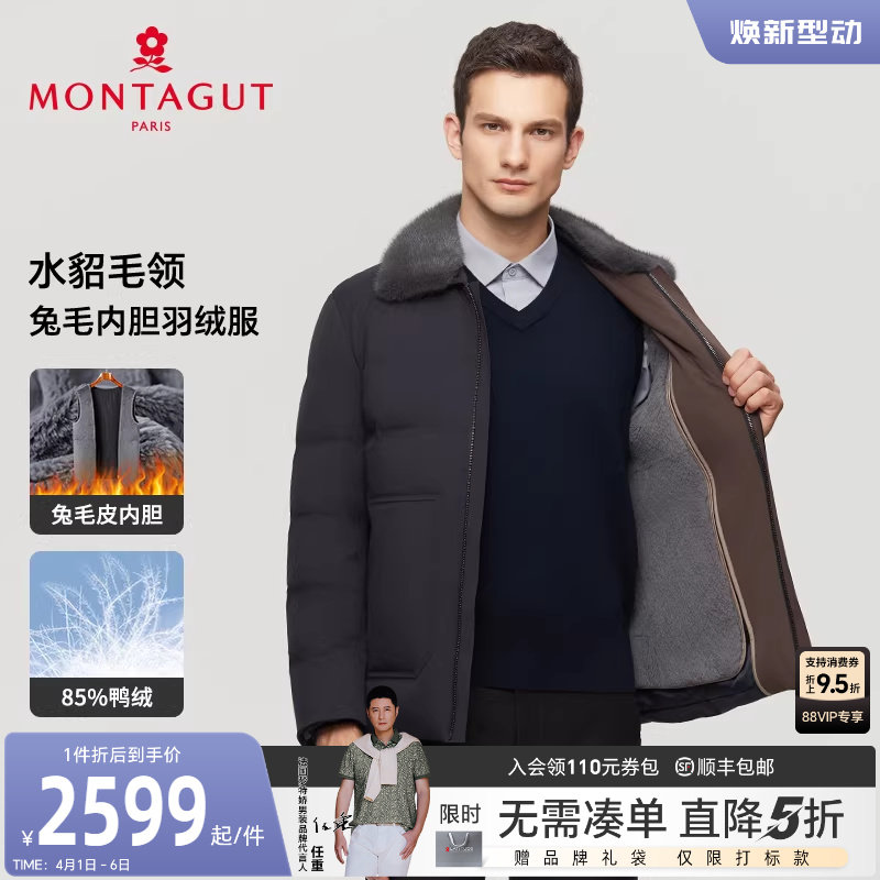 [水貂毛领/獭兔毛皮内胆]梦特娇男士皮草羽绒服白鹅绒立领外套厚J
