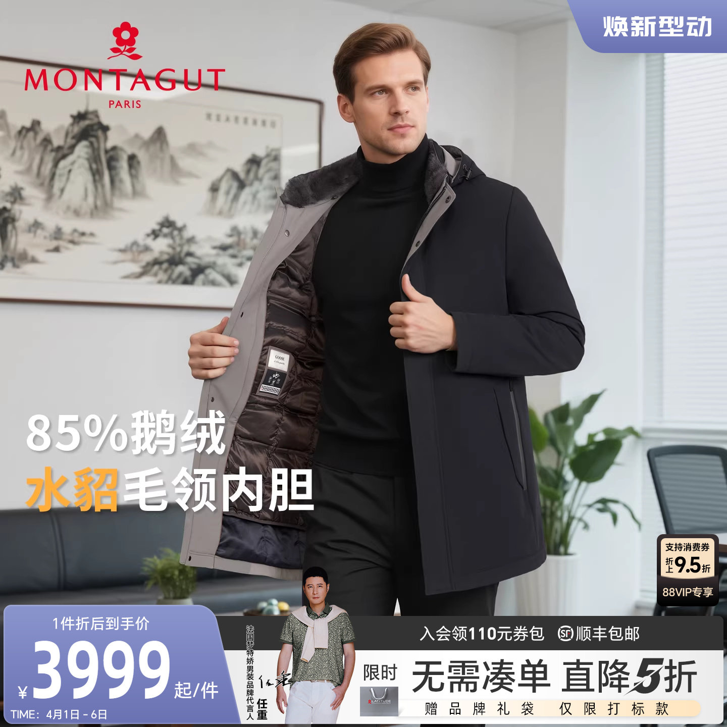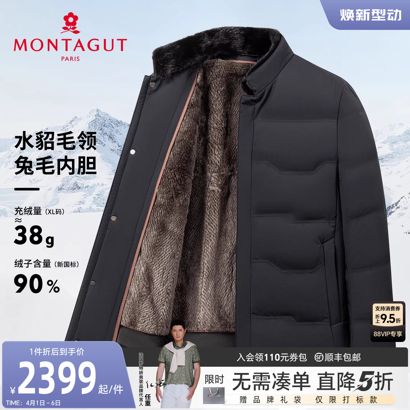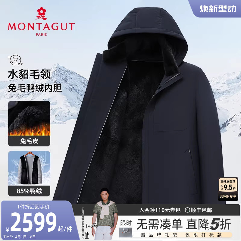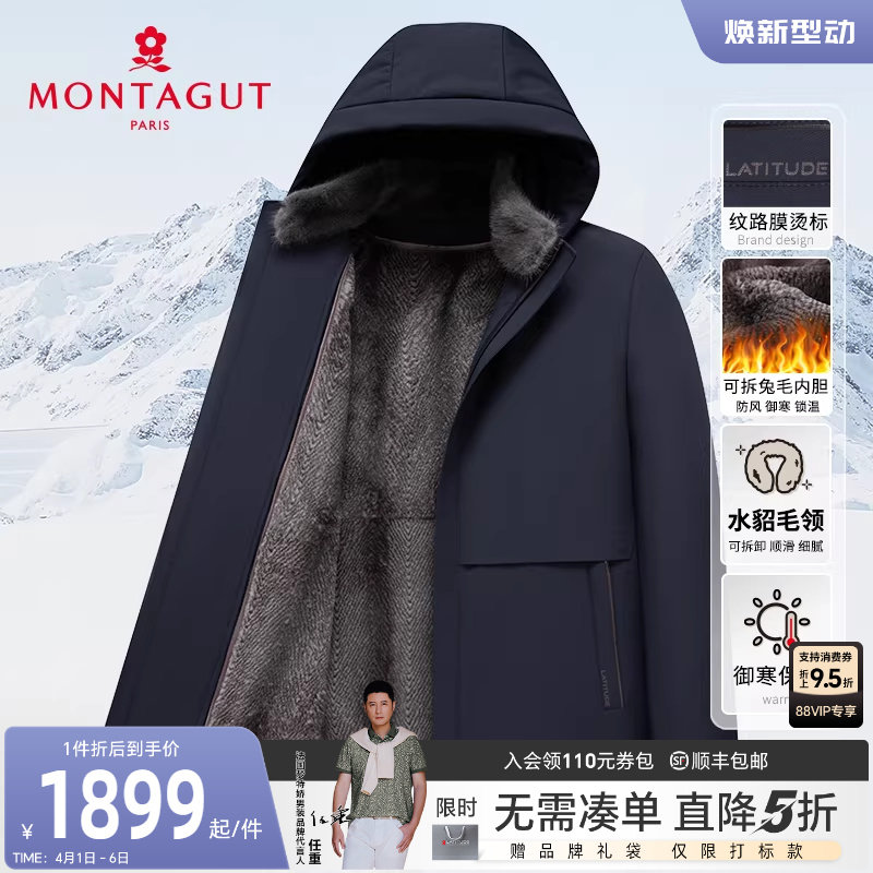 [水貂毛领/獭兔毛皮内胆]梦特娇男士皮草羽绒服白鹅绒立领外套厚J