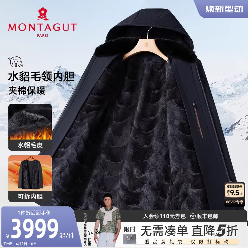 [水貂毛领/兔毛皮内胆]梦特娇冬季男士皮草轻奢派克服防寒保暖厚J