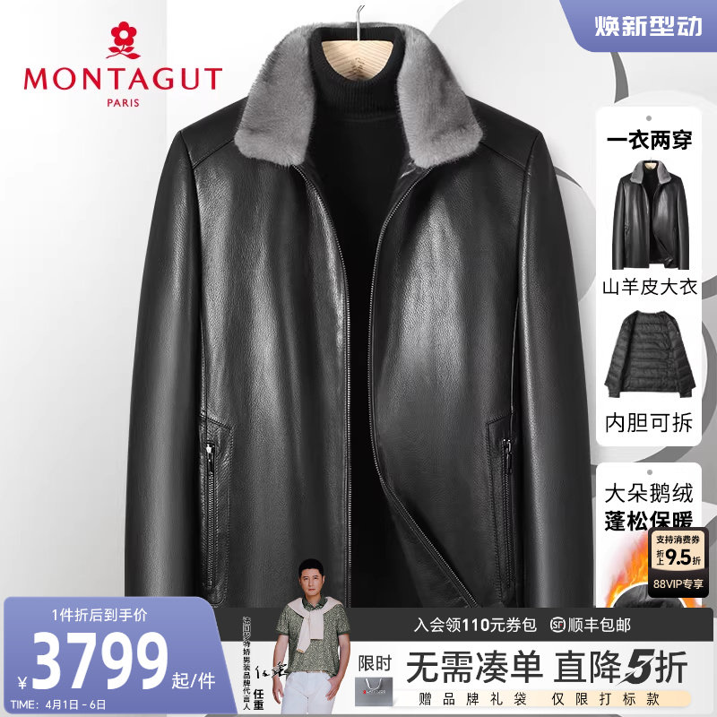 [山羊皮/水貂毛领/鹅绒内胆]梦特娇男真皮羽绒服高端皮衣保暖厚J