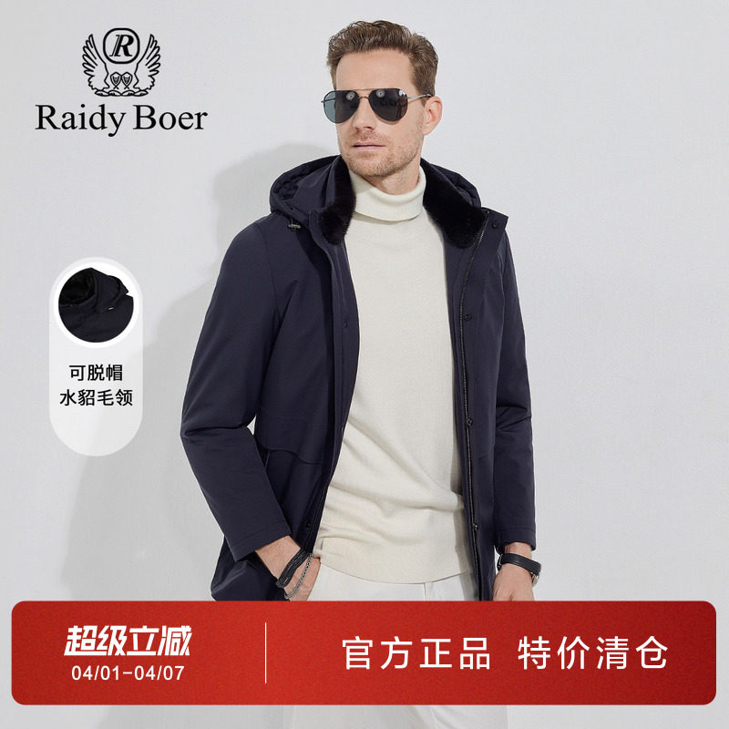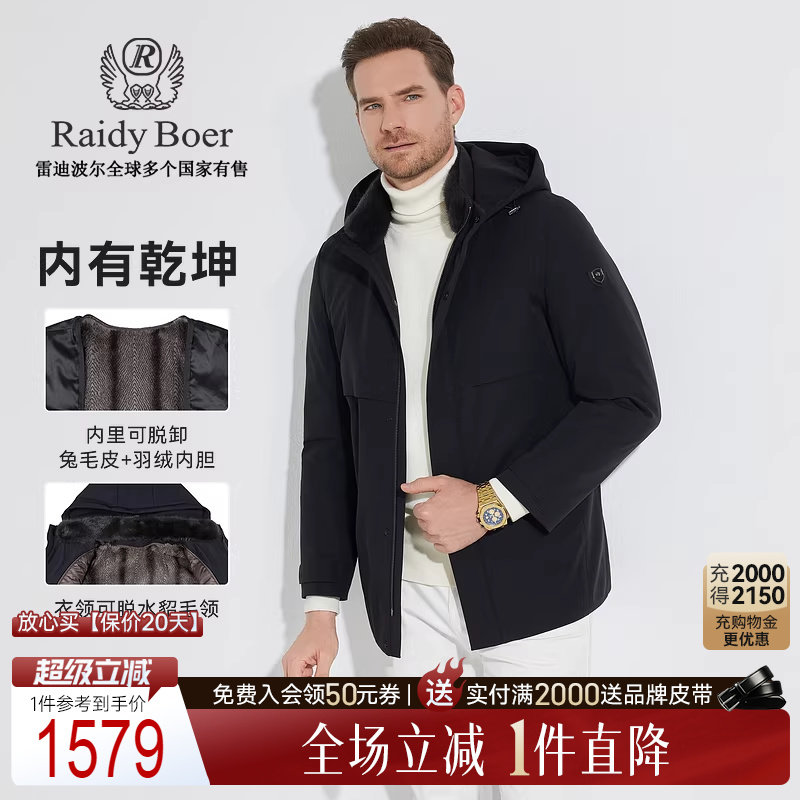 【兔毛皮水貂毛领】Raidy Boer/雷迪波尔男可卸帽中长羽绒服8053