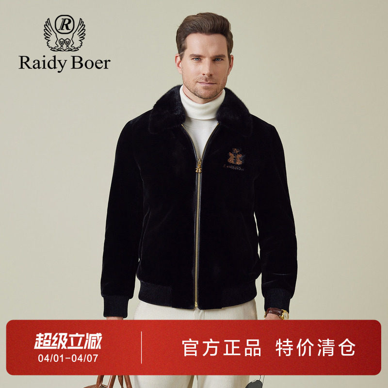 【水貂毛领绵羊皮】RaidyBoer/雷迪波尔2025冬男刺绣羽绒皮衣2032