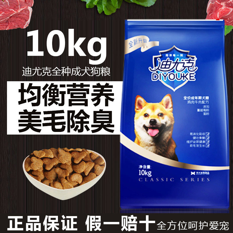 迪尤克成犬狗粮10kg金毛萨摩比熊泰迪德牧通用营养牛肉味犬粮包邮