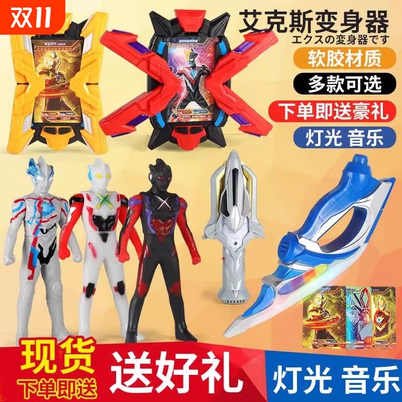 艾克斯感应变身器奥特玩具埃闪光终端头镖银河火花儿童武器套装曼