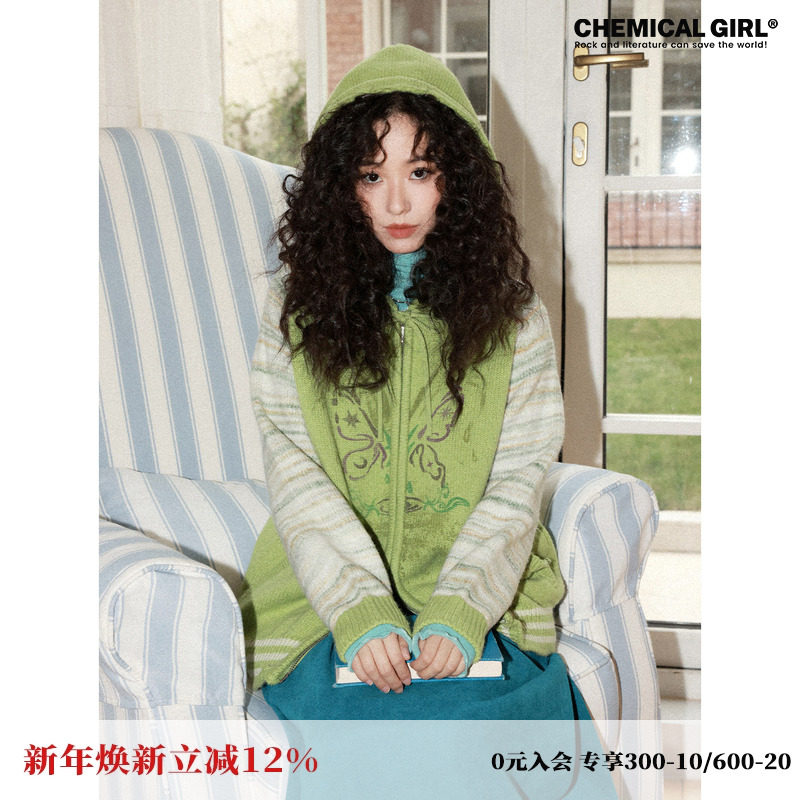 oversize!绿色连帽毛衣开衫女秋冬新款韩版宽松麻花针织衫外套潮