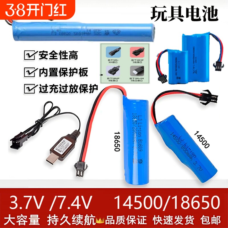 3.7V电动玩具锂电池充电器挖掘机遥控车泡泡机软弹枪机器狗F1赛车7.4V大容量RC充电电池配件电池组头灯充电宝