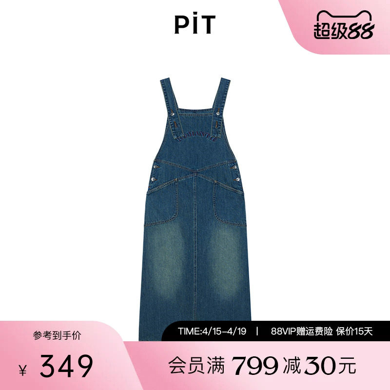 PIT莱赛尔棉可调节背带牛仔中长款连衣裙2026夏季新款显瘦