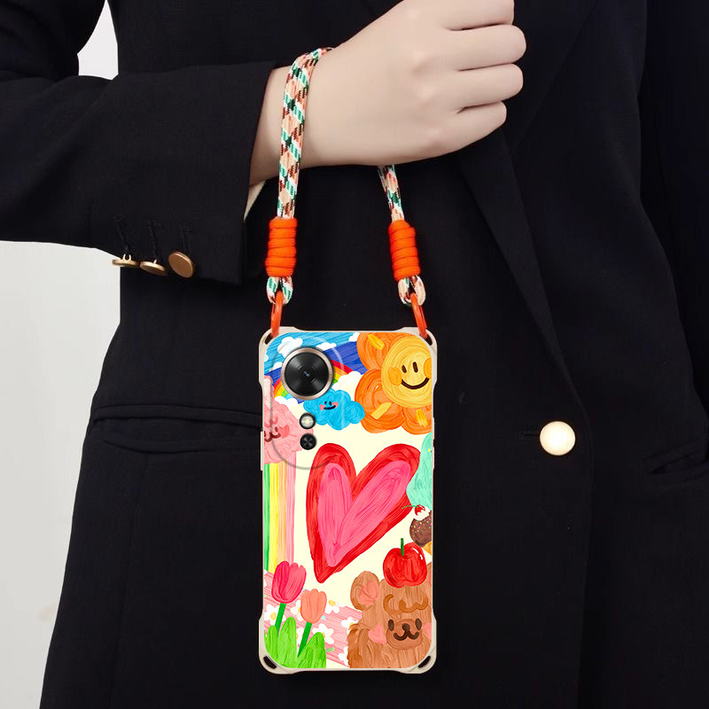 彩色油画适用荣耀畅玩60Plus斜跨手机壳X7C4G小众日韩可爱超萌X7C5G卡通时尚少女硅胶可爱男女畅玩60Plus个