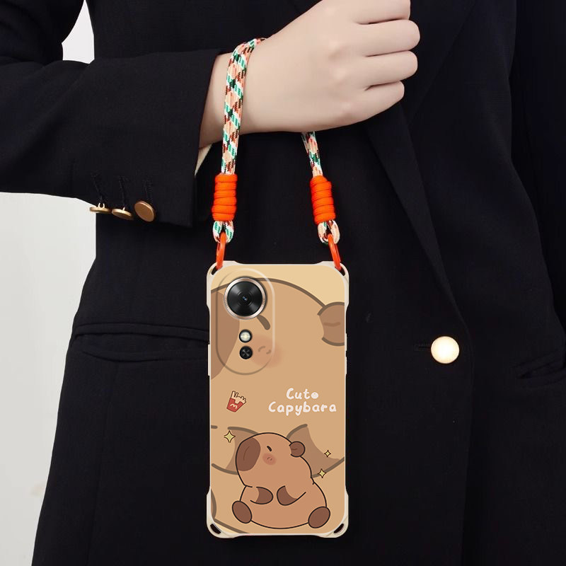 超萌卡皮巴拉适用荣耀畅玩60Plus斜跨手机壳X7C4G小众日韩X7C5G卡通可爱少女硅胶时尚男女畅玩60Plus个性手