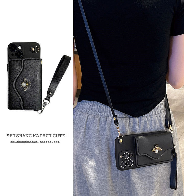 高级感黑色珍珠蜜蜂零钱卡包适用荣耀Magic5/4pro手机壳80pro+斜挎70se创意60/50se软硅胶x40i女款30畅玩50