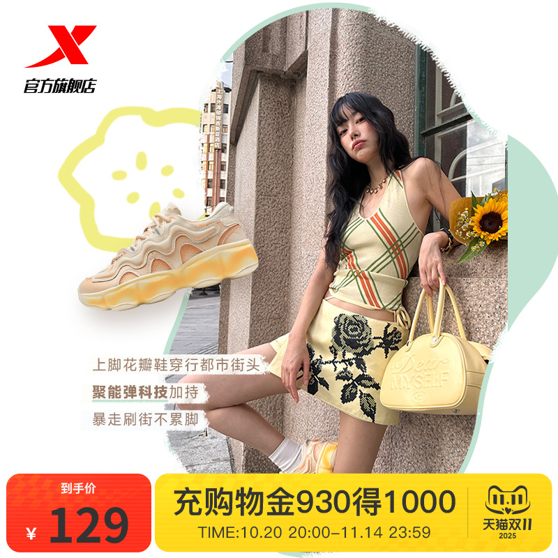 特步花瓣鞋休闲鞋百搭女鞋厚底增高轻便缓震运动鞋子学生时尚潮鞋