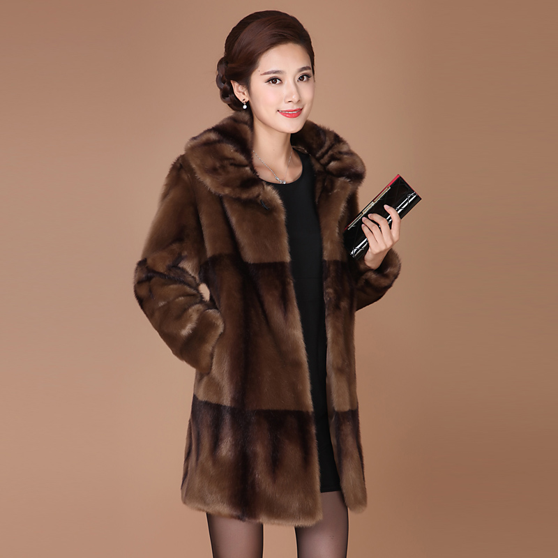 妈妈装水貂绒保暖外套中老年人冬装女貂皮大衣高贵皮草中长款加厚