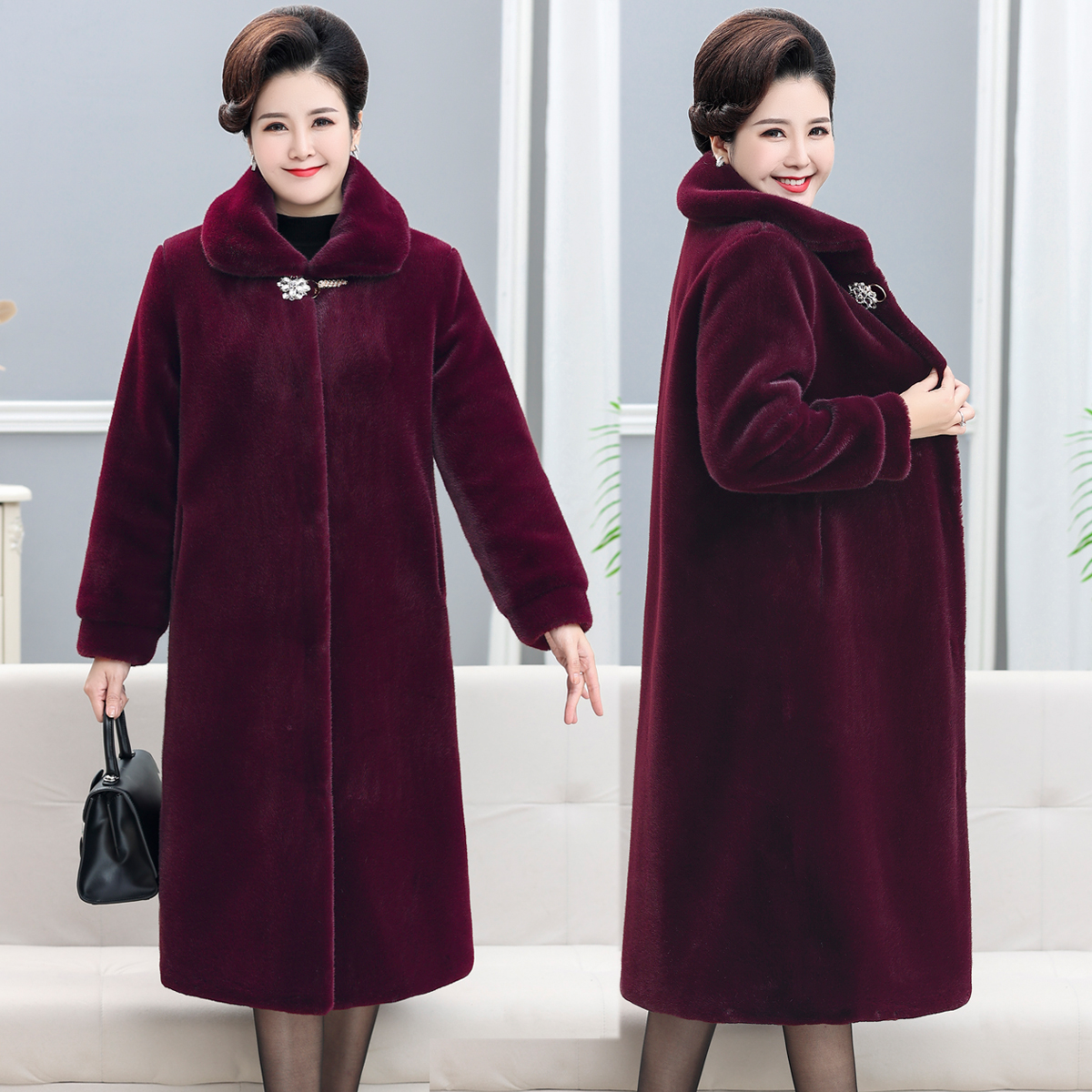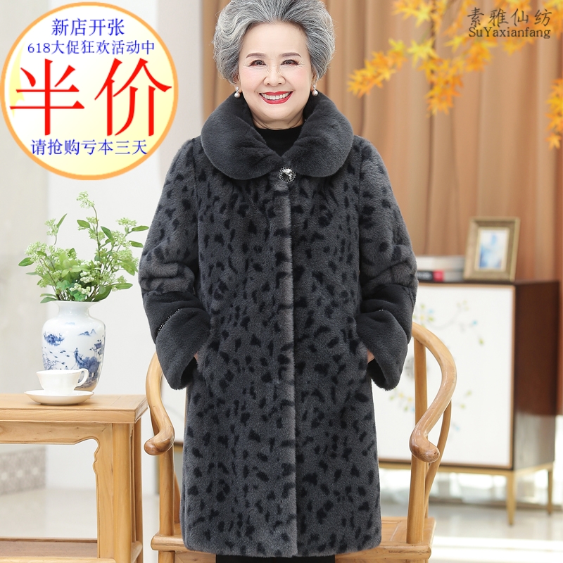 中老年皮草冬天外套女中长款貂皮大衣50岁妈妈60奶奶保暖宽松上衣