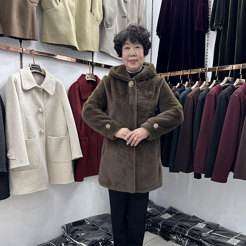 中老年皮草女老人冬装外套貂皮大衣连帽奶奶高端仿貂毛妈妈装加厚
