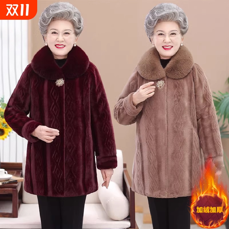 老年人女冬装貂皮大衣奶奶水貂绒加绒外套高贵仿皮草中长款妈妈装