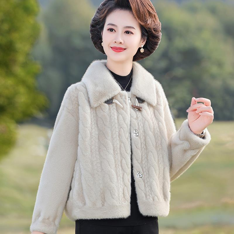 奶奶装冬装皮草外套加厚妈妈短款老太太水貂绒中老年人貂皮大衣女