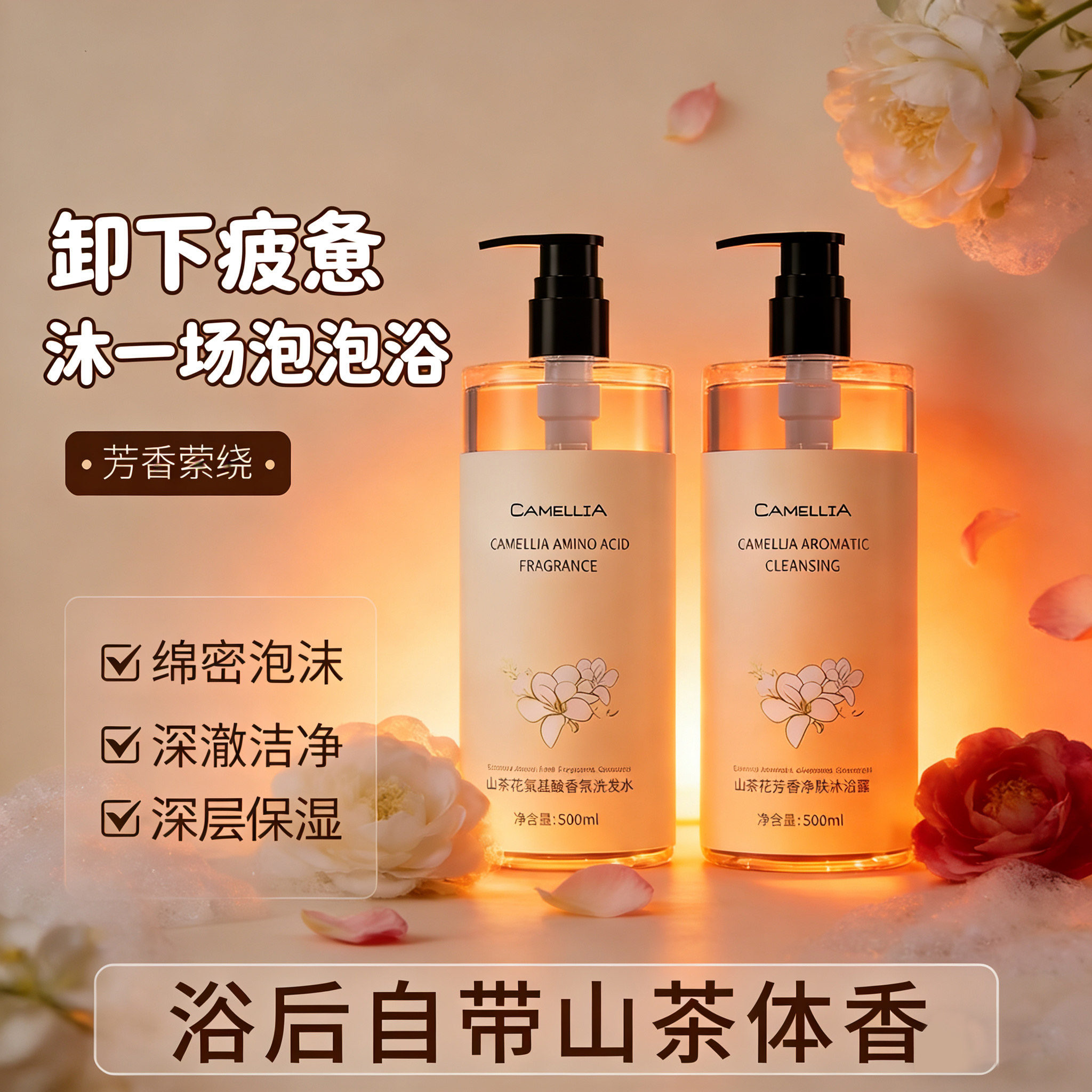 山茶花氨基酸香氛沐浴露洗发水保湿清洁留香洗护套装正品500ml