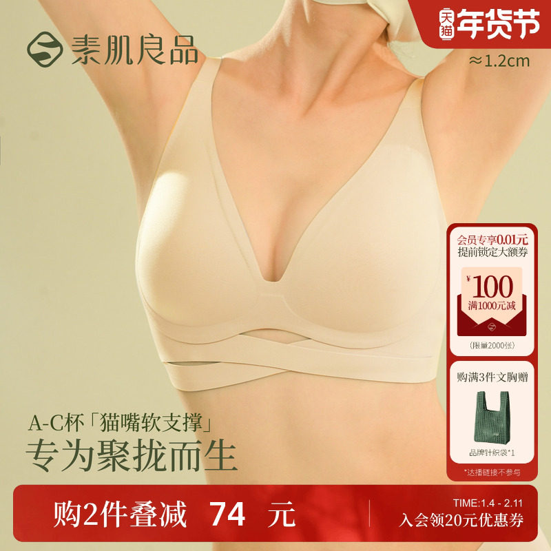 聚拢内衣女软支撑小胸显大收副乳无钢圈无痕薄款文胸上薄下厚罩杯