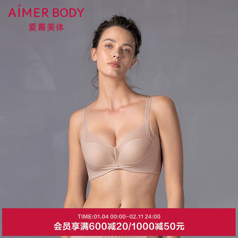 爱慕美体妙简条纹内衣女水袋模杯厚小胸聚拢塑性文胸25夏AD140571