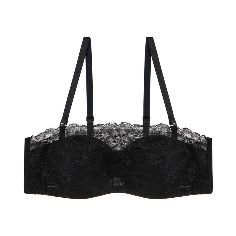艾舒客低胸半罩杯内衣女聚拢小胸无肩带文胸有钢圈性感蕾丝胸罩厚