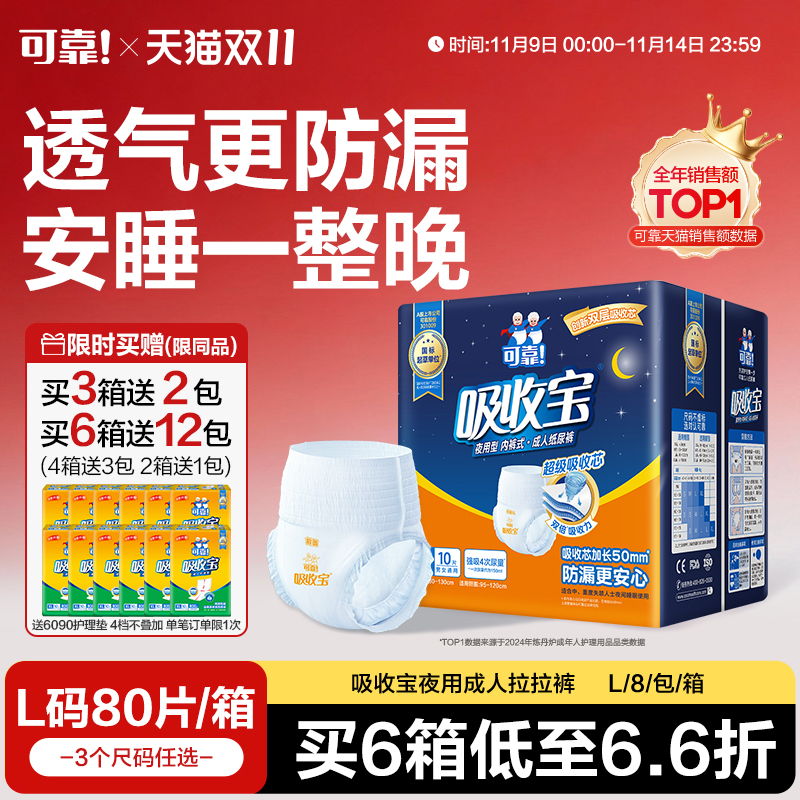 可靠吸收宝成人拉拉裤2.0老年人专用箱装内裤式纸尿裤男女尿不湿