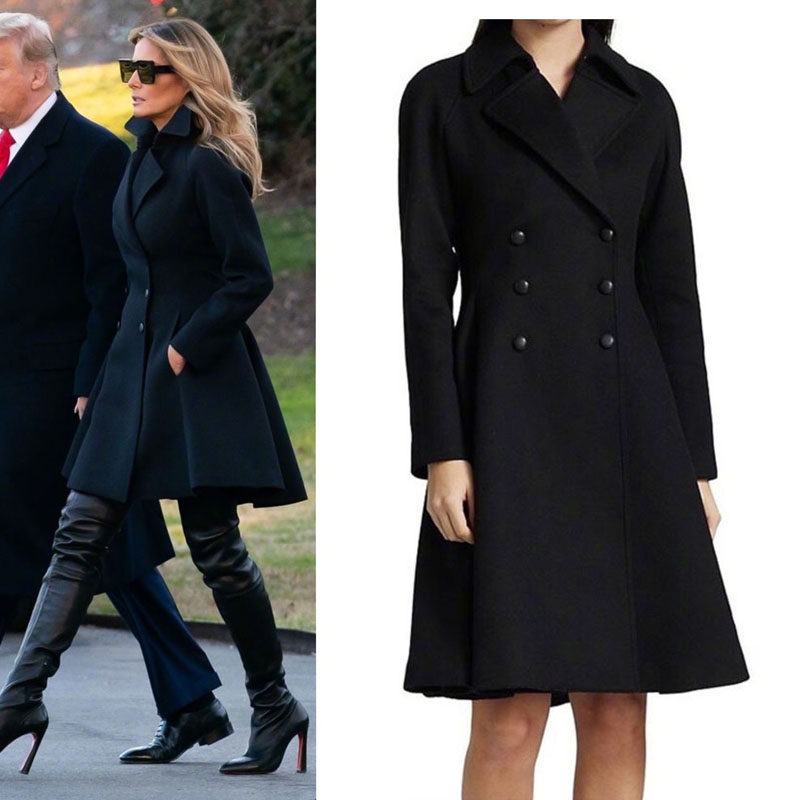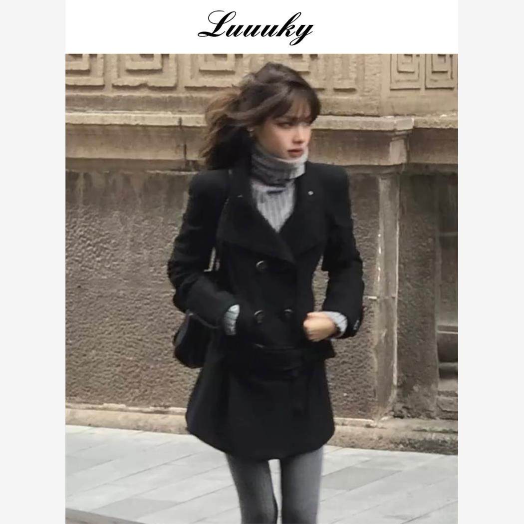 25款博主ranran同款黑色古早修身显瘦正肩毛呢大衣女复古中款风衣