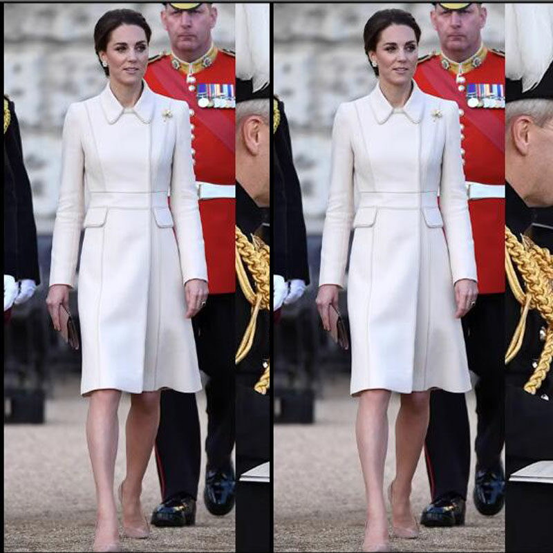 欧购高端定制凯特王妃明星同款包边米白色羊毛大衣外套女中款修身