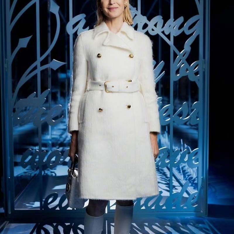 高端定制2024秋冬白色羊驼毛大衣外套女修身优雅中款英伦时尚百搭
