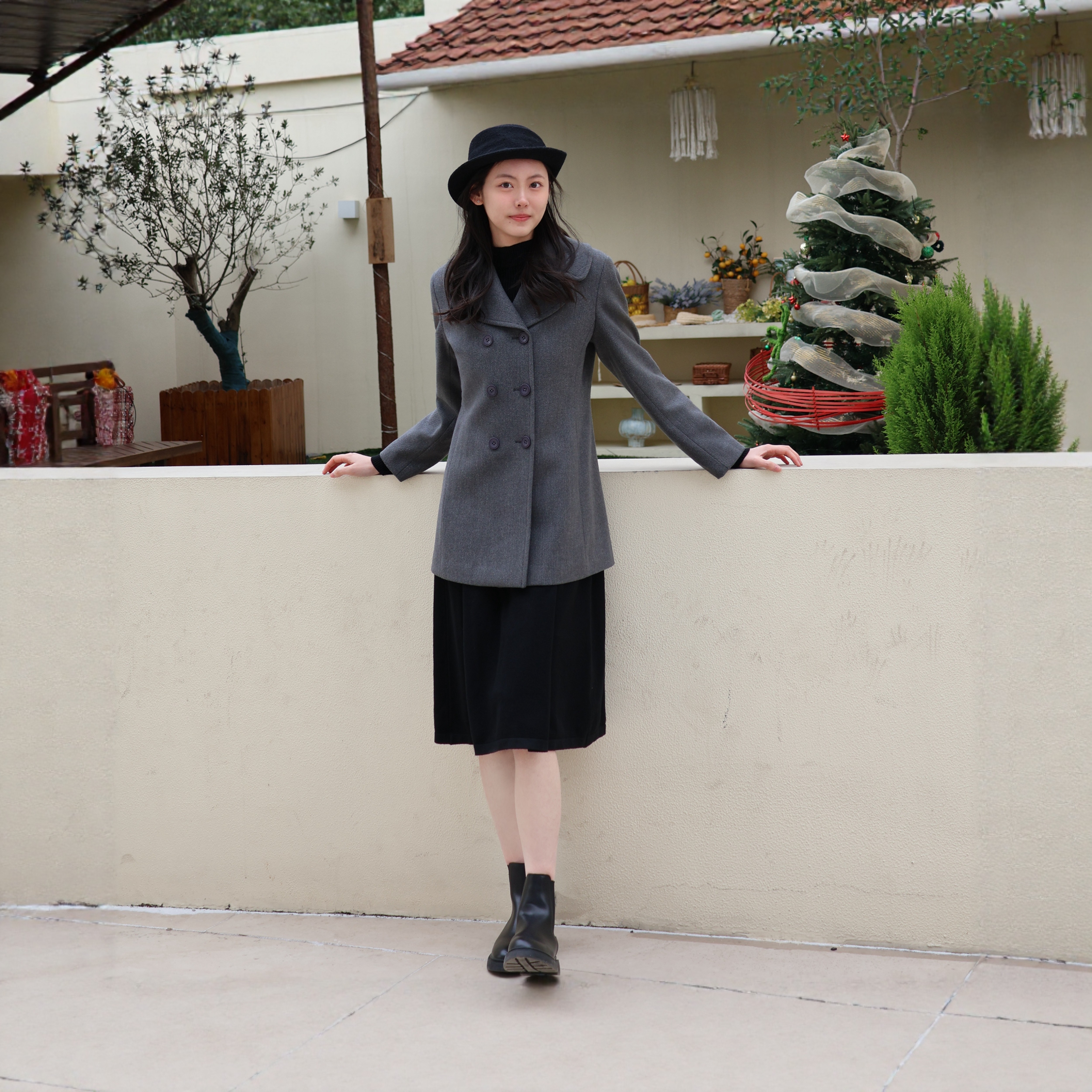 - 呢子大衣黑色长款