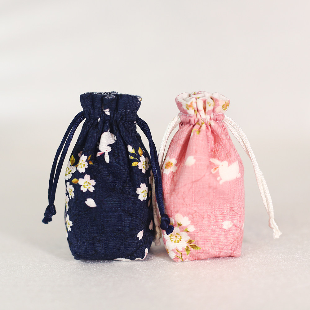日本和风手工布艺收纳袋首饰零钱口红耳机小袋迷你可爱樱花束口袋