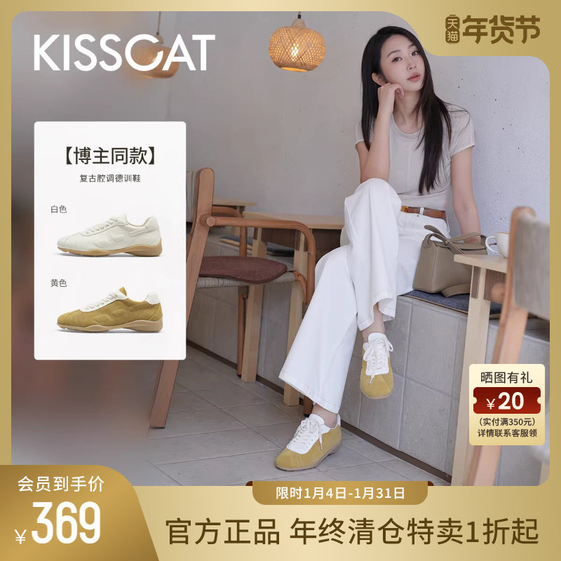 KISSCAT接吻猫新款内增高复古德训鞋女休闲运动小白鞋女士赛车鞋