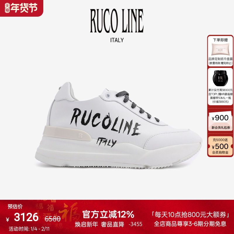 Ruco Line如卡莱意大利牛皮鞋厚底鞋子休闲运动小白鞋女6cm增高鞋