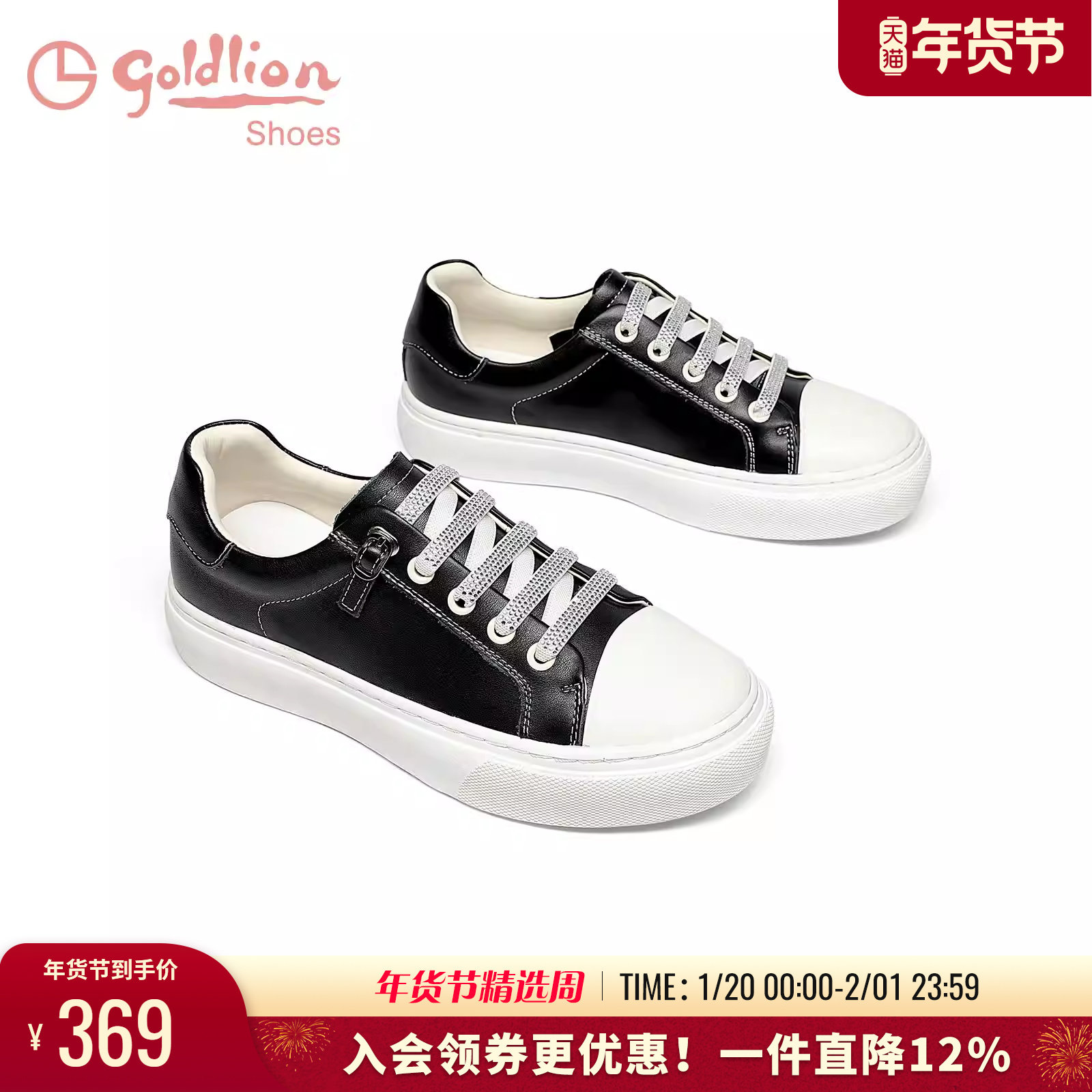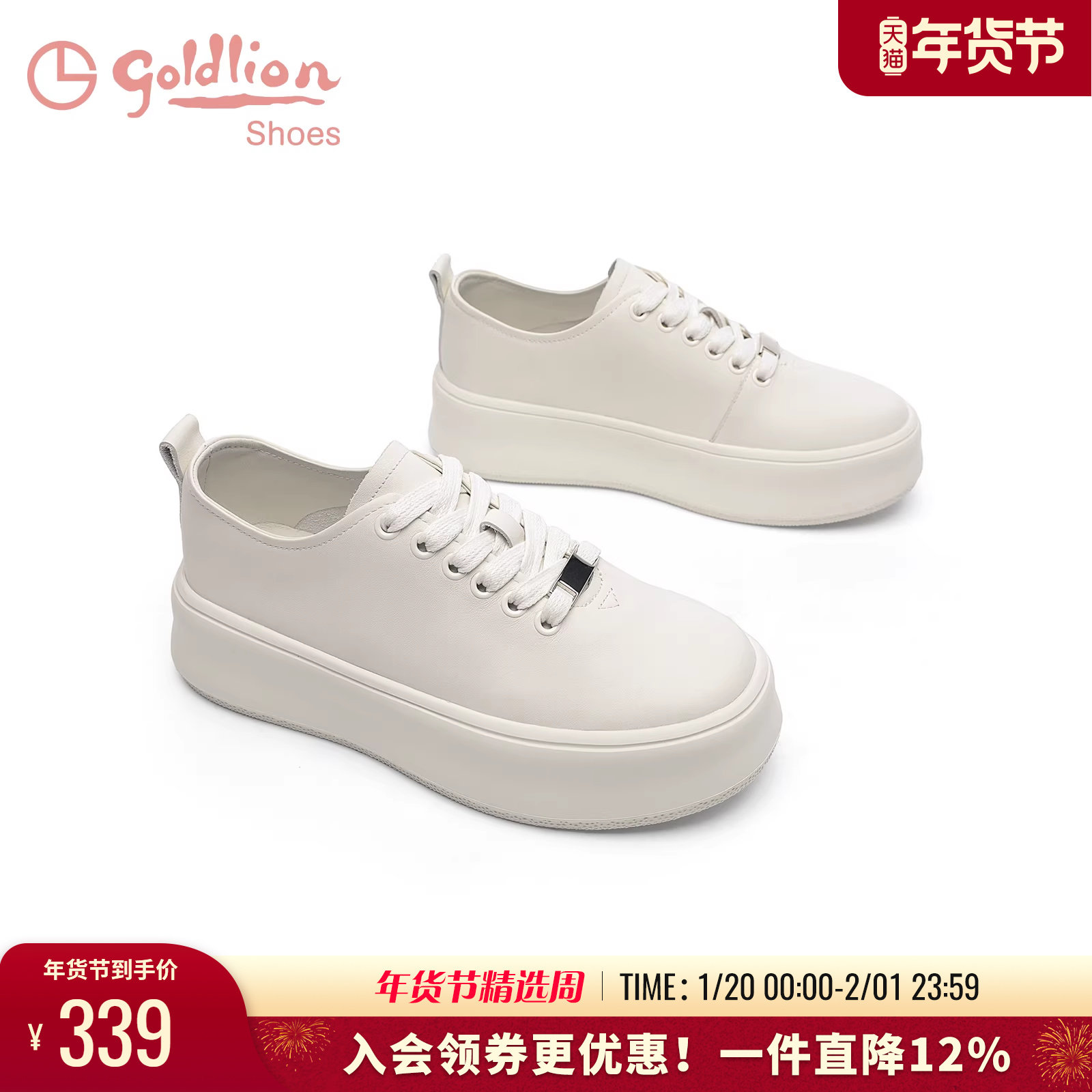 金利来女鞋春秋新款真皮白色休闲板鞋圆头不累脚平底运动小白鞋女