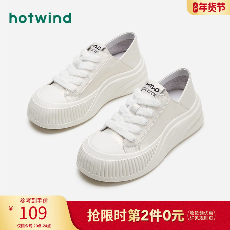 鸿星尔克女鞋板鞋厚底增高小白鞋冬季新款皮面休闲鞋百搭运动鞋子