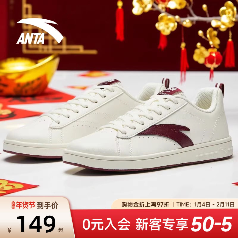 安踏薄底板鞋女鞋新年款马年鞋子女款休闲鞋简约皮面运动小白鞋女