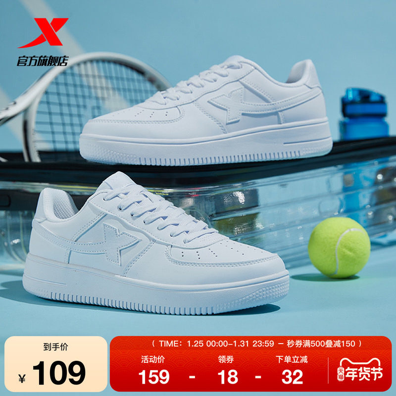 特步小白鞋女鞋冬季情侣休闲鞋子男鞋空军一号厚底百搭运动鞋板鞋